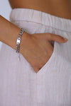 צמיד בסגנון גורמט בשילוב לולאות עבות עשוי ממתכת אל חלד בשילוב פלטת זהב קטנה