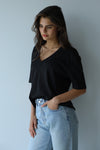 טי שירט נעימה בגזרת אוברסייז עם מפתח וי באיזור החזה - החולצה מגיעה במידה אחת - אך מתאימה לרוב למידות אקסטרה סמול - עד לארג' (שימו לב למידות החולצה)