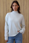 סריג בגזרת אוברסייז עשוי מבד נעים ומלטף כמו ענן. לסריג צווארון גולף עדין בשילוב פסים דקיקים בסיומת השרוול ובחלק התחתון