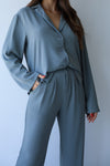 סט טוני מושלם למשרד, לערב או סתם כי את פאביולס! המכנסיים עשויים מבד רך ונשפך בגזרה גבוהה וישרה בשילוב גומי במותן האחורי. החולצה מכופתרת, שהיא לגמרי גם ג׳קט, או בלייזר דק לאוהבות הז׳אנר בגזרה משוחררת. ניתן לרכוש אותם גם בנפרד. החולצה מגיעה במידה OS - אורך: 58 ס״מ | היקף חזה: 110 ס״מ | היקף המותן: 108 ס״מ | היקף שרוול: 40 ס״מ | אורך השרוול: 66 ס״מ