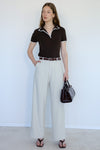 גופיית סריג במראה פולו שמשלבת בין נוחות למראה מוקפד. נלי עשויה מסריג ריב דק וגמיש שמחבק את הגוף, עם צווארון מחויט ושלושה כפתורים תואמים. הגזרה מסתיימת במותן ומעניקה סילואט נקי ומחמיא. פריט מושלם לשילוב עם מכנסיים גבוהים וחגורה דקה למראה יומיומי מלוטש ללא מאמץ.