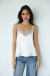 גופיית ספגטי עשויה מבד סאטן מבריק בשילוב ריקמת שיפון שקופה בחלק שמעל החזה. לגופיה כתפיות מתכווננות והגזרה משוחררת וקיימת במידה אחת ומתאימה למידות אקסטרה סמול עד מדיום בעיקר. שימו לב - צבע הגופיה הוא ורוד בייבי למרות שנראה לבן קצת בתמונות