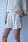 שורט פשתן (30%) בסגנון בוהו שיק, בשילוב גומי במותן (בחלק האחורי) שני כיסים וגזרת מותן