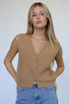 אפודת אלבי, עשויה מבד סריג רך ונעים בגוון קאמל קלאסי, עם גימור מצולע עדין המעניק מראה אלגנטי ונקי כולל מפתח וי עמוק וכפתורים תואמים בחזית. פריט מושלם לשכבות בעונות המעבר או למראה יומיומי מתוחכם.
