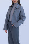ג'קט בצבע אפור עשוי מכותנה איכותית. ג׳קט קז'ואל מושלם ליום-יום עם טאץ' של שיק צרפתי. בגזרה נקייה, כפתורים גדולים וכיסים פרקטיים – הוא מחמיא, נוח, ומתאים לכל לוק.בסטייל וללא מאמץ